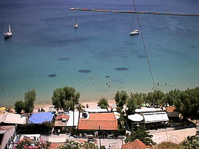 Der Strand ist ein Kieselsteinstrand und fällt flach ins Meer